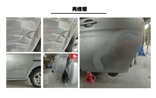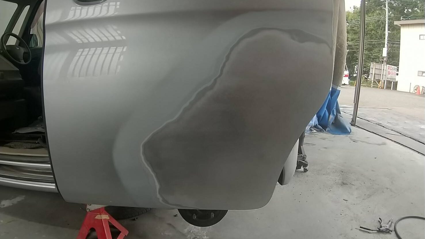 軽自動車は特にパネルが薄いので板金の段階でしっかり形状を戻さないとパテの応力でどんどん凹むんです。凹んだ上に更にパテをどんどん追加するのでこのような事態になったのかと思います。